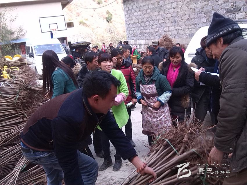 康定市羊廠村民踴躍領取大櫻桃樹苗。