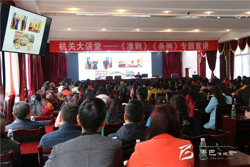 本網(wǎng)訊(記者 宋志勇 文/圖)為推動州直機(jī)關(guān)各基層黨組織和廣大黨員干部深入學(xué)習(xí)、宣傳、貫徹兩項法規(guī),準(zhǔn)確把握“兩項法規(guī)”的內(nèi)涵和精神實(shí)質(zhì),真正把黨規(guī)黨紀(jì)的權(quán)威樹起來、立起來、執(zhí)行到位。4月6日上午,州直工委舉辦“機(jī)關(guān)大講堂”——貫徹學(xué)習(xí)《中國共產(chǎn)黨廉潔自律準(zhǔn)則》和《中國共產(chǎn)黨紀(jì)律處分條例》專題宣講會,來自州級機(jī)關(guān)、省屬單位科級以下黨員干部共300多人聆聽了講座。