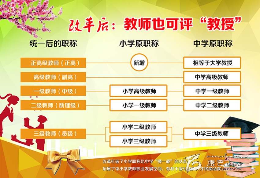 一是中小學教師職稱“天花板”被拆除,可參與全省統(tǒng)一組織的“正高級”職務評定;評定后,工資、福利待遇與大學正教授等同。此項在此次改革中最受關注。