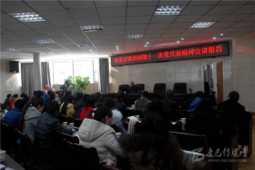 徐杰通過PPT的形式,圖文并茂的從全面了解州第十一次黨代會的主題、主要成果和起草過程,準(zhǔn)確認(rèn)識過去五年工作的成績經(jīng)驗(yàn),深刻把握州第十一次黨代會對當(dāng)前形勢的分析、五年工作的指導(dǎo)思想和奮斗目標(biāo),精確把握和全面落實(shí)未來五年全州經(jīng)濟(jì)社會發(fā)展任務(wù),堅(jiān)持全面從嚴(yán)治黨、不斷夯實(shí)黨的執(zhí)政根基五個方面,以詳實(shí)的數(shù)據(jù)、生動的畫面、平實(shí)的語言,提綱挈領(lǐng)、深入淺出地講解了州第十一次黨代會精神。