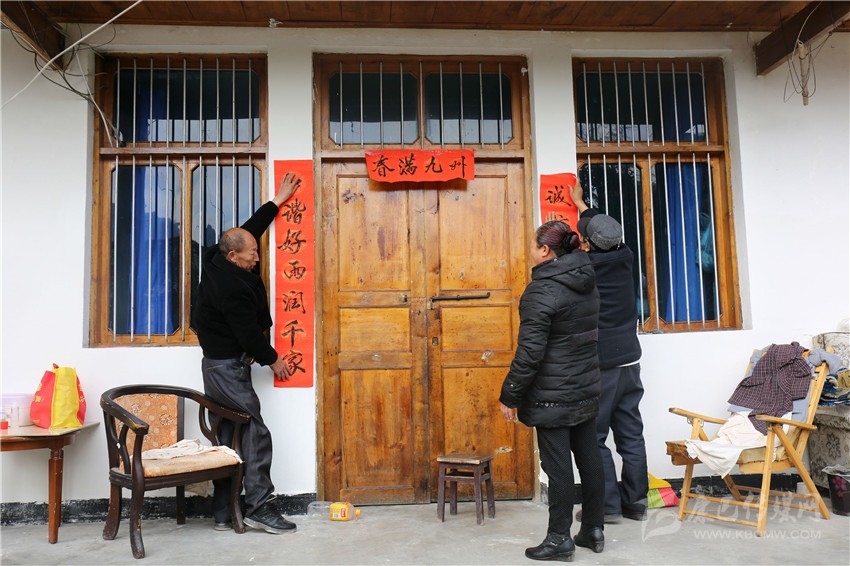 貼完自家的春聯(lián),老陳又到鄰居家?guī)兔N,見到鄰居蘭大爺家準(zhǔn)備的春聯(lián)與街上賣的不一樣,是手寫春聯(lián)。老陳一打聽才知道,原來海螺溝管理局宣教群團(tuán)處正開展“迎新春,送春聯(lián)”活動(dòng),這些手寫春聯(lián)正是蘭大爺特意去活動(dòng)現(xiàn)場免費(fèi)領(lǐng)取的??粗鴷◥酆谜啐堬w鳳舞的字體,老陳非常喜歡,轉(zhuǎn)頭對(duì)妻子說:“過兩天咱們也去要兩幅手寫春聯(lián)回來”。