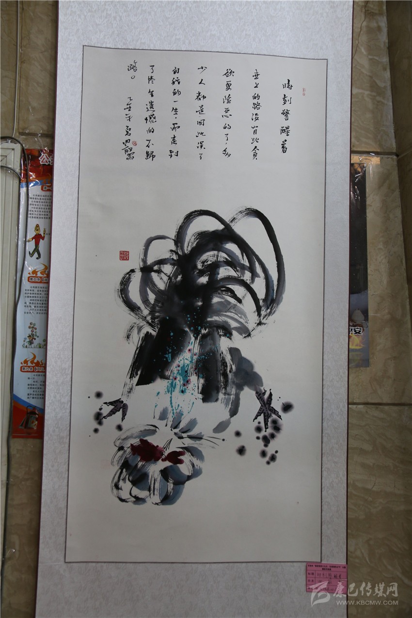 “‘松潔鶴鳴’是我親筆所繪,畫中‘松潔’表現(xiàn)的是黨員干部廉潔自律、風清氣正的一種政治生態(tài)環(huán)境;‘鶴鳴’表現(xiàn)的是警鐘長鳴,時時刻刻向黨員干部敲敲‘鐘’?!敝堇夏甏髮W書法班今年70歲的胡鄧珠指作書畫作品興奮地說。
