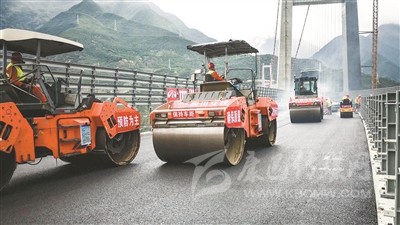 大橋最后一段路面正在施工。 四川交投雅康公司 供稿
