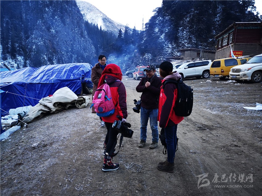 11月6日晚,甘孜日報(bào)記者馬建華、張磊、余秋林和州廣播電視臺副臺長何良忠、記者洛嘎、肯布及白玉電視臺記者連夜趕赴則巴村中轉(zhuǎn)站。26公里的崎嶇山路,冰雪道危險(xiǎn)重重,坡陡彎急,司機(jī)憑借經(jīng)驗(yàn)在坡度60度以上的暗冰道上行駛,經(jīng)過兩個(gè)多小時(shí)的艱難行進(jìn),采訪組終于入住前方救災(zāi)組搭建的救災(zāi)帳篷。深夜,大雪紛揚(yáng),帳篷里寒氣襲人。帳篷四周,狗叫聲不止,一條狗鉆進(jìn)帳篷,蜷縮在記者床鋪旁邊,因?yàn)樘?,記者們不忍心將它?qū)離。11月7日,白格堰塞湖庫容量達(dá)到2.71億立方米,白格堰塞湖形勢嚴(yán)峻,嚴(yán)重威脅我州金沙江下游群眾生命財(cái)產(chǎn)安全。一大早,10多公分厚的大雪扮美了村莊,卻給機(jī)具、救災(zāi)物資、救援人員進(jìn)出等帶來極大困擾?!拔覀兊耐诰驒C(jī)司機(jī)在山上被大雪困了一夜,徒步到中轉(zhuǎn)站休息了三個(gè)小時(shí)又到山上去作業(yè)了,你們應(yīng)該去采訪一下?!敝菡敝蓍L何康林說。