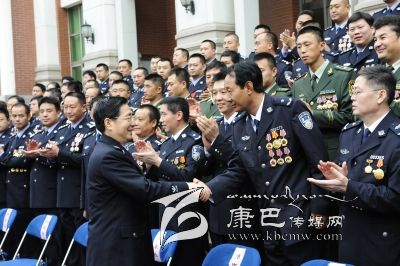 2013年10月,國務(wù)委員、公安部長郭聲琨接見全國公安英模代表。 (州特警支隊(duì)提供)