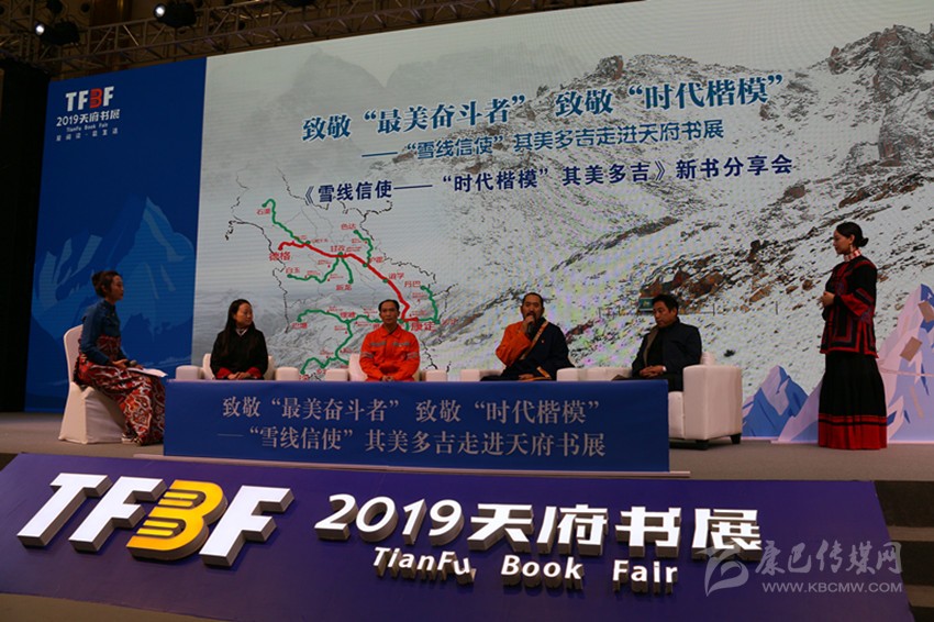 圖為本網(wǎng)兩名女記者撰寫的《雪線信使——“時代楷模”其美多吉》新書分享會現(xiàn)場。