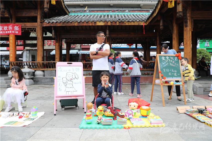 “這個(gè)玩具1元錢賣不賣?”“已經(jīng)很便宜啦!最低3元錢。”5月31日,瀘定橋廣場人流涌動(dòng)、熱鬧非凡,叫賣聲不絕于耳,不少“小顧客”在各個(gè)攤位之間,認(rèn)真地挑選自己心儀的商品,有模有樣地討價(jià)還價(jià),廣場變成了熱鬧的自由貿(mào)易市場。