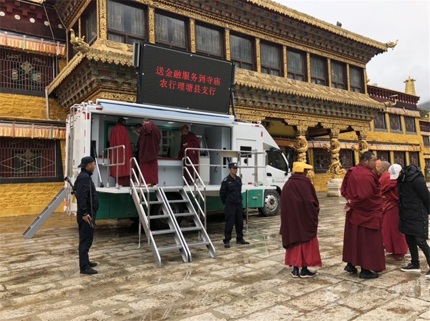 深入寺廟,服務僧侶“顯真情”。5月23日,理塘縣支行又將流動汽車銀行開往距縣城近100公里的下壩片區(qū),該片區(qū)下轄4個鄉(xiāng)鎮(zhèn)、16個行政村、1座寺廟,先后深入鄉(xiāng)鎮(zhèn)、寺廟開展流動金融服務,累計辦理存取款業(yè)務12筆、金額25500元,殘損幣兌換200元,辦理開卡3戶、手機銀行2戶、手機短信5筆、密碼解鎖2筆、查詢3筆、明細打印2筆、手機安全認證碼修改3筆。