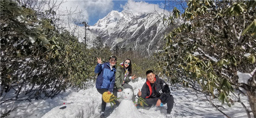 “早就想來海螺溝旅游,可惜一直沒時間,這次是沾了老婆的光,我終于如愿以償。能同時欣賞春天的美麗和冬日的妙趣,我覺得這是海螺溝景區(qū)最有意思的地方?!?月9日上午,在海螺溝景區(qū)大門入口處,給妻子拍完照,成都游客王先生向記者分享了他的旅游心得。