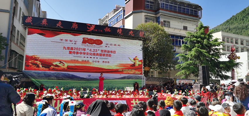本網(wǎng)訊 用聲音追憶崢嶸歲月,用詩(shī)詞迎接世界讀書(shū)日。4月23日上午,在康定市民族小學(xué)舉辦的2021年甘孜州全民閱讀活動(dòng)暨康定市全民閱讀活動(dòng)啟動(dòng)儀式上,康定市7所學(xué)校緊扣慶祝中國(guó)共產(chǎn)黨成立100周年主線,以弘揚(yáng)中華民族傳統(tǒng)文化、紅色文化為主題,為大家奉上一桌各具特色的文化盛宴。