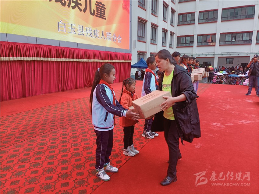 在“六一”兒童節(jié)之際,白玉縣殘聯(lián)前往城區(qū)各學(xué)校,與殘疾兒童親切交談,詳細(xì)了解孩子們學(xué)習(xí)、生活、家庭等方面的情況,鼓勵(lì)孩子們保持樂(lè)觀(guān)向上的心態(tài),積極面對(duì)生活,并為他們送去了價(jià)值6000余元的文具禮包、書(shū)包等節(jié)日禮物。圖為工作人員把禮物送到孩子們手上。 梁露 鄧珠吉村 攝影報(bào)道