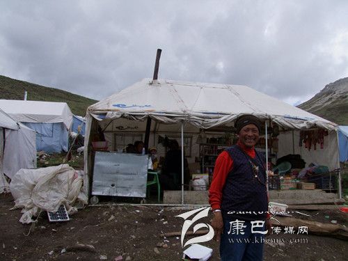 由于挖蟲草的時(shí)間前后近2個(gè)月,所以采挖蟲草的人往往都不回家,而是在山坳靠水的地方扎帳篷宿營。在蟲草采挖點(diǎn),我們看到很多這樣的宿營地,或三、五頂帳篷扎堆,或三、五十頂帳篷聚居。在理塘縣曲登鄉(xiāng)阿加隆洼這個(gè)大的聚居地上記者看到上千頂帳篷整齊有序地排成行,不僅能看到帳篷外的煤氣罐和處處升起的炊煙,還能看到供娛樂和消遣用的臺(tái)球桌和能采購到日常生活用品的小商店,甚至還能看到升起的紅旗。聚居區(qū)如此龐大,其實(shí)并不都是采挖人。這其中還混雜著許多蟲草的收購人和兜售人,還有各種到這里來做生意賺錢的人,如一個(gè)小集鎮(zhèn)般熱鬧。