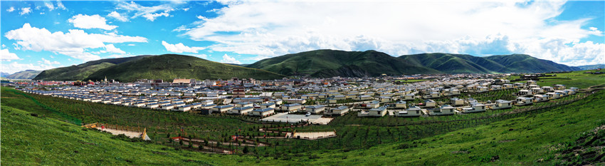色達(dá)縣全境海拔大都在4000米以上,長冬無夏,年平均溫度-5℃,大氣含氧量不及低海拔地區(qū)的60%。為改善貧困群眾的生活條件,2017年,色達(dá)縣啟動了易地扶貧搬遷集中安置,對口幫扶的溫江區(qū)投入資金4775萬元,又專門追加320萬元用于社區(qū)及周邊環(huán)境綠化。