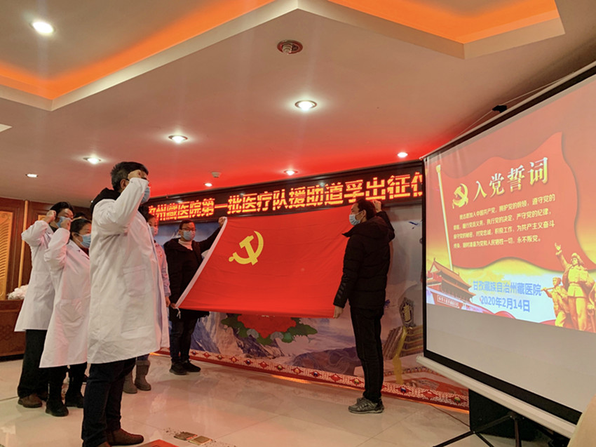 事實(shí)證明,州藏醫(yī)院的擔(dān)心和提前準(zhǔn)備完全是必要的。2020年2月,道孚縣爆發(fā)疫情,全縣進(jìn)入管控狀態(tài)??粗约旱募亦l(xiāng)發(fā)生疫情,州藏醫(yī)院的醫(yī)護(hù)人員心急如焚。盡管對(duì)這未知的病毒心中沒底,但沒人退縮,全院上下皆積極請(qǐng)戰(zhàn)。在醫(yī)院黨委再次申請(qǐng)下,州抗疫指揮部研究同意了藏醫(yī)院參與抗疫工作,2月14日,在時(shí)任副院長(zhǎng)、主任藏醫(yī)師江吉村的帶領(lǐng)下,藏醫(yī)診療隊(duì)奔赴道孚。這是新中國(guó)成立以來,藏醫(yī)首次參加的大型抗疫阻擊戰(zhàn)。