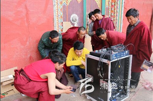 “這是功放機,這是DVD,這里是話筒插口,音量大小就在這里調節(jié)……”在德格縣溫拖鄉(xiāng)滿金寺的大殿外,僧人白扎正專心記錄著音響調音臺的使用方法,并用自己的手機全程錄下了整個操作流程。