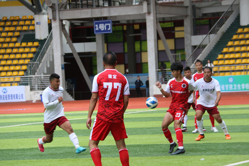 下半場(chǎng)比賽開(kāi)始,甘孜隊(duì)通過(guò)長(zhǎng)傳和球員之間的跑位,取得了一些進(jìn)攻機(jī)會(huì),但是康定隊(duì)的后場(chǎng)防守嚴(yán)密,甘孜隊(duì)并沒(méi)有取得實(shí)質(zhì)成果,一場(chǎng)拉鋸戰(zhàn)正在展開(kāi)。第64分鐘,康定隊(duì)選擇換人來(lái)保持進(jìn)攻的火力,比賽繼續(xù)。第75分鐘,甘孜隊(duì)在前場(chǎng)多次傳球,10號(hào)登真達(dá)吉接到足球后選擇直接打門(mén),一道弧線劃過(guò)康定隊(duì)的半場(chǎng),足球應(yīng)聲入網(wǎng),平分的僵局被打破,比分變成了甘孜隊(duì)1:0康定隊(duì)。