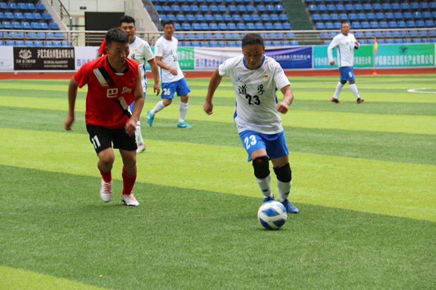 上午9時(shí),道孚隊(duì)與巴塘隊(duì)的季軍爭(zhēng)奪戰(zhàn)正式開(kāi)打,現(xiàn)場(chǎng)助威的觀眾熱情高漲,為各自支持的球隊(duì)吶喊助威。比賽一開(kāi)始雙方球員迅速進(jìn)入狀態(tài),在中場(chǎng)你來(lái)我往,足球在各位球員的腳下輾轉(zhuǎn)騰挪,經(jīng)過(guò)激烈比賽,上半場(chǎng)巴塘隊(duì)1:0暫時(shí)領(lǐng)先道孚隊(duì)。