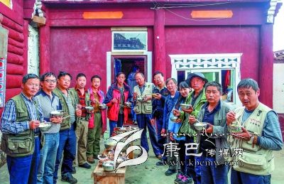 就著簡單的飯菜,攝影隊(duì)員們端起了碗筷