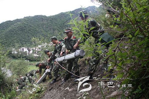 趕到災(zāi)區(qū),眼前已是一片狼藉,無(wú)情的泥漿已淹沒(méi)了大半個(gè)村莊。面對(duì)災(zāi)情,全體官兵來(lái)不及多想,立即運(yùn)送救災(zāi)帳篷到達(dá)距事發(fā)現(xiàn)場(chǎng)約4公里外的國(guó)如村。前往國(guó)如村的山路崎嶇,汽車無(wú)法通行,且隨時(shí)可能再次發(fā)生滑坡和泥石流,官兵們不顧危險(xiǎn),肩扛手抬沿山上陡峭的小路進(jìn)行運(yùn)送。途中還經(jīng)過(guò)一座僅一米寬的木板吊橋,此橋常年失修,走在上面左搖右晃,下面是湍急的河水,十分危險(xiǎn)。想到受災(zāi)群眾急切的眼神,官兵們冒著危險(xiǎn),小心翼翼地通過(guò)了小橋。