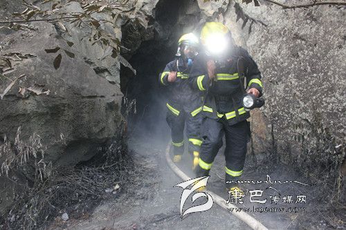 消防官兵在使用有毒氣體探測(cè)儀對(duì)現(xiàn)場(chǎng)氣體進(jìn)行檢測(cè)后發(fā)現(xiàn),雖然煙氣刺鼻,但未檢測(cè)出有毒氣體。在使用排煙機(jī)對(duì)山洞進(jìn)行持續(xù)排煙后,中隊(duì)派出兩名消防官兵佩戴空氣呼吸器和強(qiáng)光燈在水槍的掩護(hù)下進(jìn)入山洞偵查煙氣源。因山洞內(nèi)煙霧大,溫度高,能見(jiàn)度低,第一批消防官兵未能找到煙氣源。在短暫準(zhǔn)備后,第二批消防官兵攜帶相關(guān)器材進(jìn)入山洞繼續(xù)尋找。在距離山洞口十幾米的地方,消防官兵發(fā)現(xiàn)了大量正在燃燒的電纜線,經(jīng)初步確定,大量白煙就是電纜線燃燒后產(chǎn)生的。因山洞長(zhǎng)時(shí)間受高溫烘烤隨時(shí)可能倒塌,消防官兵在與當(dāng)?shù)卣?fù)責(zé)人協(xié)商后對(duì)山洞洞口實(shí)施了封閉滅火。