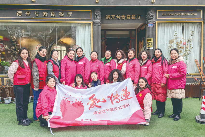 自2019年起,團(tuán)隊(duì)還堅(jiān)持每年舉行“致敬環(huán)衛(wèi)工”免費(fèi)自助餐活動(dòng);3年新冠疫情期間及“9·5”瀘定地震發(fā)生后,團(tuán)隊(duì)更是積極響應(yīng)黨委政府亟需志愿者的號(hào)召,一抹抹“巾幗紅”賡即沖在一線,購(gòu)置災(zāi)區(qū)所需用品、悉心照顧受災(zāi)病患,發(fā)揮了公益團(tuán)隊(duì)?wèi)?yīng)有職能,康定女子徒步公益隊(duì)的名字,愈來愈為人所知、為人稱贊。