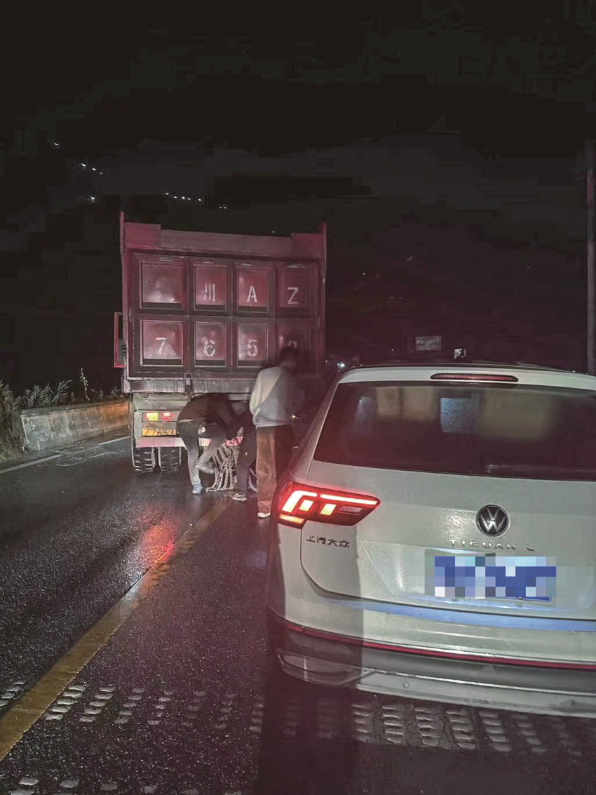 “那天我們到巴塘已經(jīng)是晚上了,突然發(fā)生的意外讓我們都慌了神……”據(jù)杜先生回憶,10月5日當(dāng)天,杜先生和家人從康定自駕到巴塘,沿途的旖旎風(fēng)光如同畫卷般徐徐展開,讓杜先生一行沉醉其中。然而,當(dāng)他們的車輛緩緩駛至列衣隧道通往巴塘方向的出口時,由于夜色已深,大雨滂沱,視線因此變得異常模糊。在這樣的環(huán)境下,盡管杜先生駕駛得小心翼翼,但車輛還是發(fā)生了打滑。伴隨著“咚”的一聲沉悶的聲響和劇烈的晃動,車輛的右側(cè)前后兩輪滑入了路邊的排水溝渠之中,瞬間將他們的旅程陷入了困境。