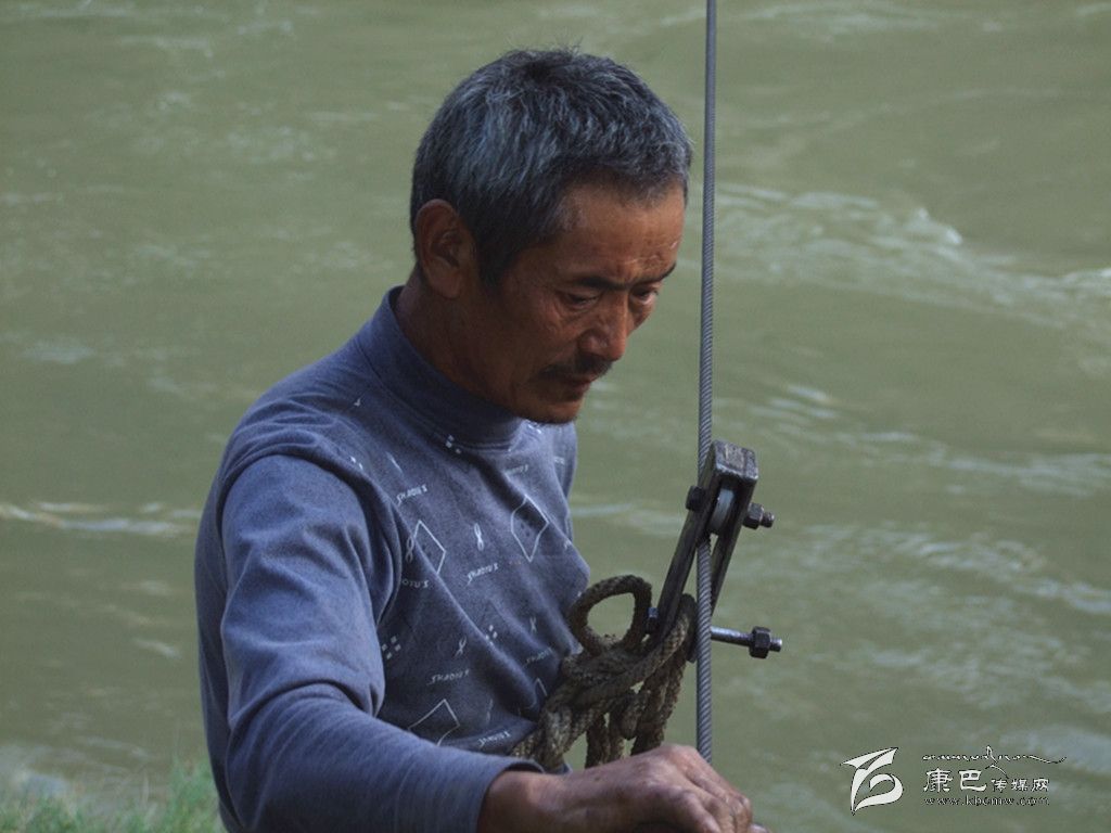 這個(gè)男人叫哈西布杰,58歲,小男孩是他的孫子。他到河邊來沒有別的目的,就是想看看記者是怎樣采訪的。于是,哈西布杰很快成為了采訪對(duì)象,他開始講述他的家族和這條溜索的故事。