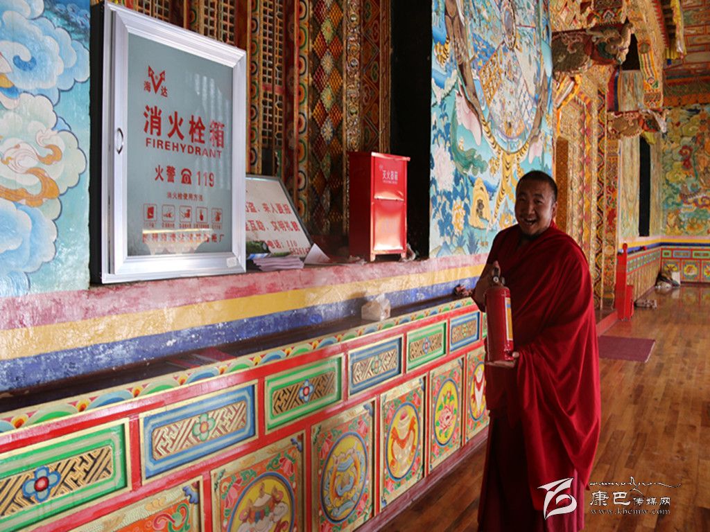 “僧人們每天在這里修行和生活,對(duì)我們僧人來說,這個(gè)廟就是我們的家,我們就是廟的主人。寺廟的防火安全我們義不容辭。”每天傍晚時(shí)分,鄉(xiāng)城縣桑披寺的義務(wù)防火隊(duì)隊(duì)長(zhǎng)則曲迪迪便帶領(lǐng)3名隊(duì)員依次查看各經(jīng)殿堂的酥油燈、哈達(dá)、經(jīng)書之間擺放距離是否符合要求,消防器材、設(shè)施是否完好有效,各廳堂安全疏散通道是否暢通等,排查寺廟火災(zāi)安全隱患。