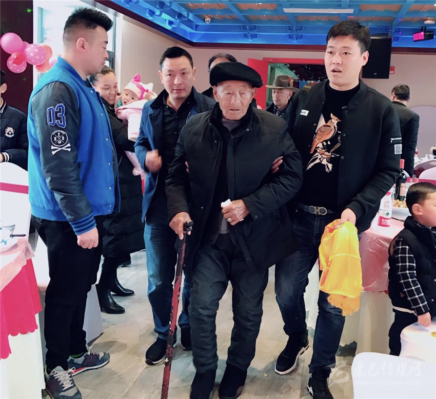3月5日,在瀘定縣烹壩鄉(xiāng)十里香酒店,按照當?shù)貍鹘y(tǒng),王瑞生的兒孫們提前為他隆重過百歲大壽。雖然已近百歲高齡,但王瑞生精神矍鑠,思路清晰,談吐自如,面色紅潤的他身著簡樸,胸前始終戴著2016年由中共中央、中央軍委頒發(fā)的“中國工農(nóng)紅軍長征勝利80周年紀念章”,接受親友們的祝福。“祝您健康長壽,開開心心”。親人們不絕于耳的祝福,老人心滿意足,笑容滿面。“好,好,我的家人團圓和睦,家庭幸福,是我最大的心愿?!比缃?,老人已是四世同堂,家人濟濟一堂,親情流淌,老人幸福開懷。