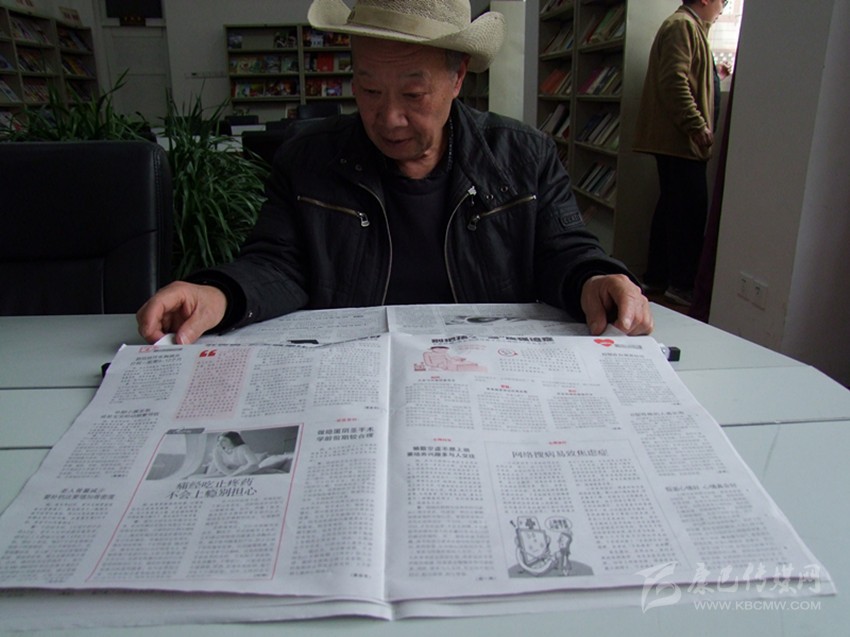 4月23日,記者走進(jìn)州圖書(shū)館,看到一位老者正在認(rèn)真的閱讀報(bào)紙,眼神隨著指尖的移動(dòng)來(lái)回游走,臉上的溝壑雖深,臉頰卻依舊紅潤(rùn),老人精神矍鑠。老人姓王,今年72歲,每天吃過(guò)飯后,他就來(lái)到圖書(shū)室,呆上三個(gè)小時(shí)左右,看自己喜歡的書(shū),然后順便買菜回家。王大爺興致盎然地告訴記者:“現(xiàn)在科技發(fā)達(dá)了,網(wǎng)絡(luò)給人們帶來(lái)了很大的便利,不過(guò)我不太喜歡在網(wǎng)上看書(shū),年輕的時(shí)候,條件沒(méi)有現(xiàn)在好,買不起書(shū)。但我對(duì)紙質(zhì)書(shū)情有獨(dú)鐘,這是年輕時(shí)養(yǎng)成的習(xí)慣;當(dāng)然,并不是說(shuō),我反對(duì)電子閱覽,現(xiàn)在年紀(jì)大了,看電腦、手機(jī),身體吃不消,何況我用的是老年機(jī),上面沒(méi)有看書(shū)的功能?!碑?dāng)記者問(wèn)他圖書(shū)室里有那么多書(shū),為什么偏偏選擇報(bào)紙時(shí),他說(shuō):“我平時(shí)喜歡看新聞,但廣電媒體有一個(gè)弊端,就是一晃而過(guò),報(bào)紙卻不一樣,一遍沒(méi)看懂還可以多看幾遍,而且報(bào)紙涉及的內(nèi)容也很廣,方針政策、健康、文學(xué)等等都有,可以說(shuō)看報(bào)紙是我生活的一個(gè)補(bǔ)充。圖書(shū)館里面有很多的報(bào)紙,選擇余地大,夠我看了;偶爾我也會(huì)翻翻其它的雜志,但是手中一刻沒(méi)有報(bào)紙,就感覺(jué)今天白來(lái)圖書(shū)館了。”