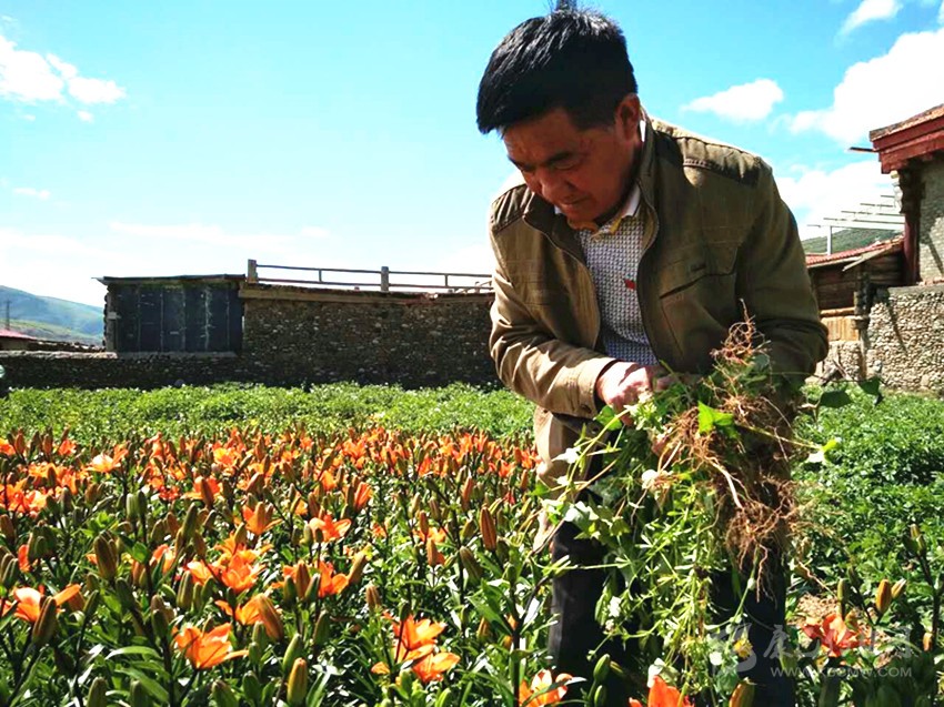 今天,面對傳統(tǒng)種植業(yè)和生產(chǎn)、生活方式的轉(zhuǎn)型提升,在種植青稞和大豆的土地上,蝦拉沱人直面現(xiàn)實,轉(zhuǎn)變觀念,流轉(zhuǎn)土地,種下了美麗鮮艷的百合花。