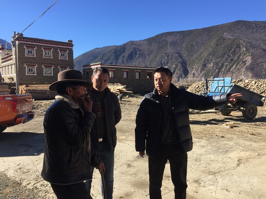 康定市委副書記易西澤仁(右)指導基層維穩(wěn)工作。