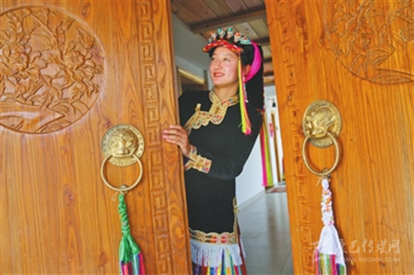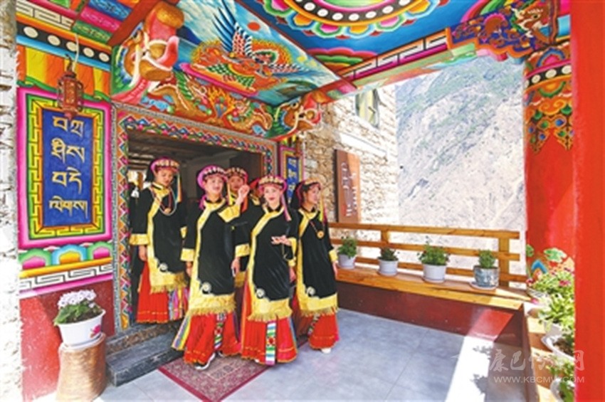 步入藏寨,藏式花紋的窗欞外懸掛著火紅的辣椒和金黃的玉米。朱紅色的大門上刻著藏式圖騰,客廳里色彩鮮艷、雕龍畫鳳的藏式餐桌上則擺滿了當(dāng)?shù)厥a(chǎn)的時(shí)令瓜果。室內(nèi)房間干凈整潔,有寬大的床鋪、客廳和洗手間,手捧香甜的酥油茶,倚窗而立,樹葉隨風(fēng)擺動(dòng),似乎在訴說著少女心中對(duì)外面世界的向往。