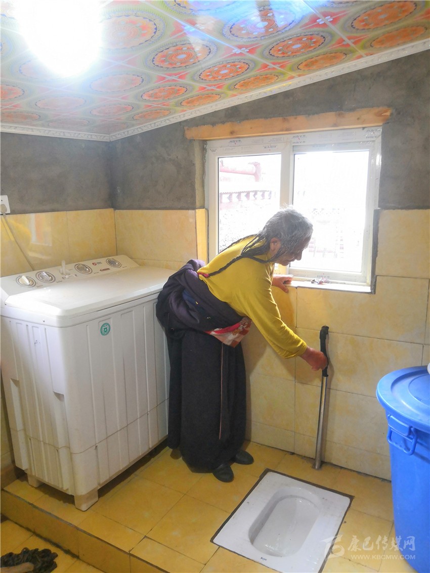 淺棕花紋的地磚、白色的墻磚、沖水式蹲坑、陽光從窗戶上透進(jìn)來,洗漱臺上洗發(fā)露和香皂整齊的擺放著,24小時供應(yīng)熱水的熱水器讓人恍惚住在酒店。村民絨熱按一下沖水器,高興地說:“現(xiàn)在家家戶戶都有了新廁所,沖水方便沒有味道,以前只能在電視上看到的廁所現(xiàn)在我們也可以用,自從改造了廁所感覺家里都寬敞了許多。”