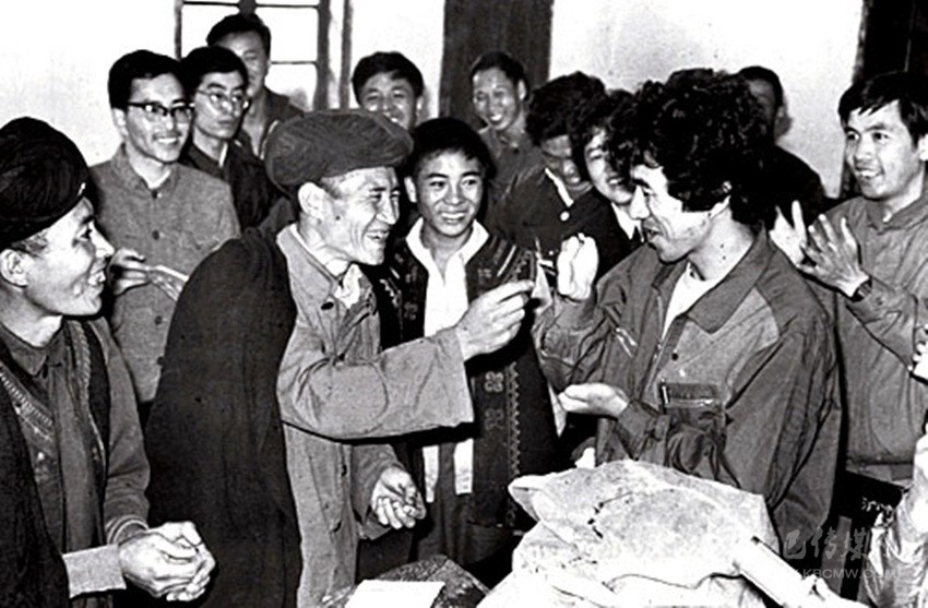 1983年,裝上假肢的松田宏也赴海螺溝看望感謝磨西公社的四位救命恩人。 資料圖片
