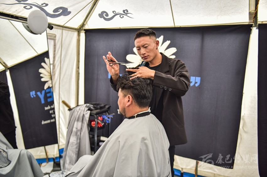 “有很多康巴漢子找我做造型,上個月,我把小帳篷換成了現(xiàn)在的大帳篷,進行了一些簡單的裝飾,能容納更多人,大家剪頭發(fā)更方便了,游客也能看到更精致的康巴漢子?!鼻鸁羯V樽院赖匦χf。