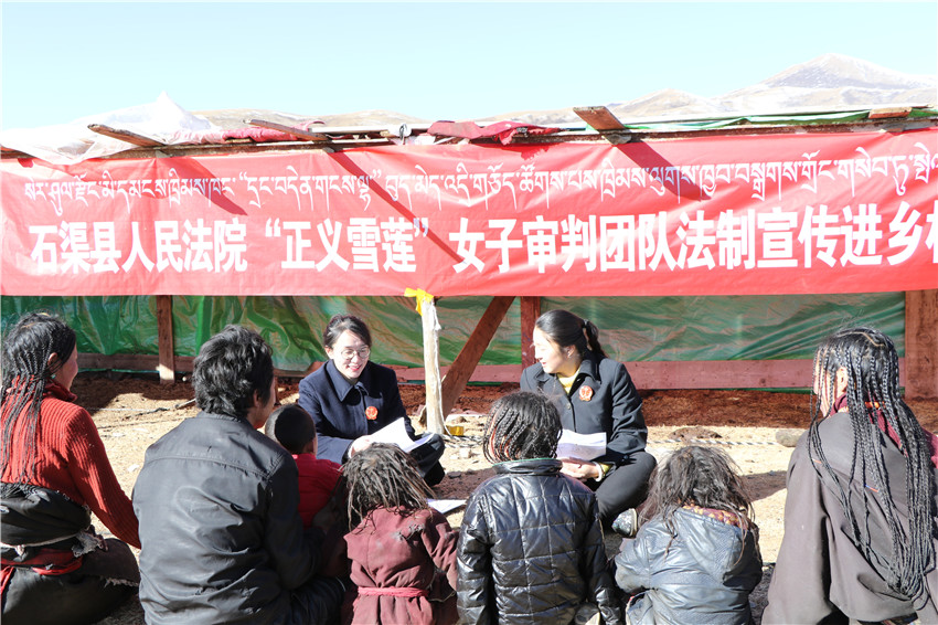 就在前些天,扎西群章被分配到海拔4700米的國道318線禾尼段執(zhí)勤。當(dāng)時(shí)風(fēng)雪交加,寒風(fēng)刺骨,扎西群章被凍得鼻涕直流,過往路人見此景象都紛紛向她噓寒問暖。有位放牧的老太太搓著扎西群章的雙手說:“孩子,這么冷的天還執(zhí)勤,你的手都冰成這樣了,快進(jìn)帳篷喝碗熱茶。”守護(hù)平安,收獲溫暖,正是這些平凡的暖心瞬間堅(jiān)定了扎西群章守護(hù)“天空之城”的決心。