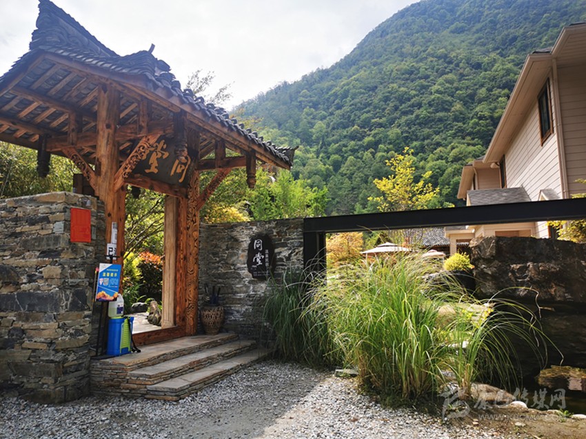 走過碎石鋪就的院壩,幾株狗尾巴草隨風(fēng)搖曳,再穿過古韻十足的大門,同堂溫泉民宿的故事正式啟幕。