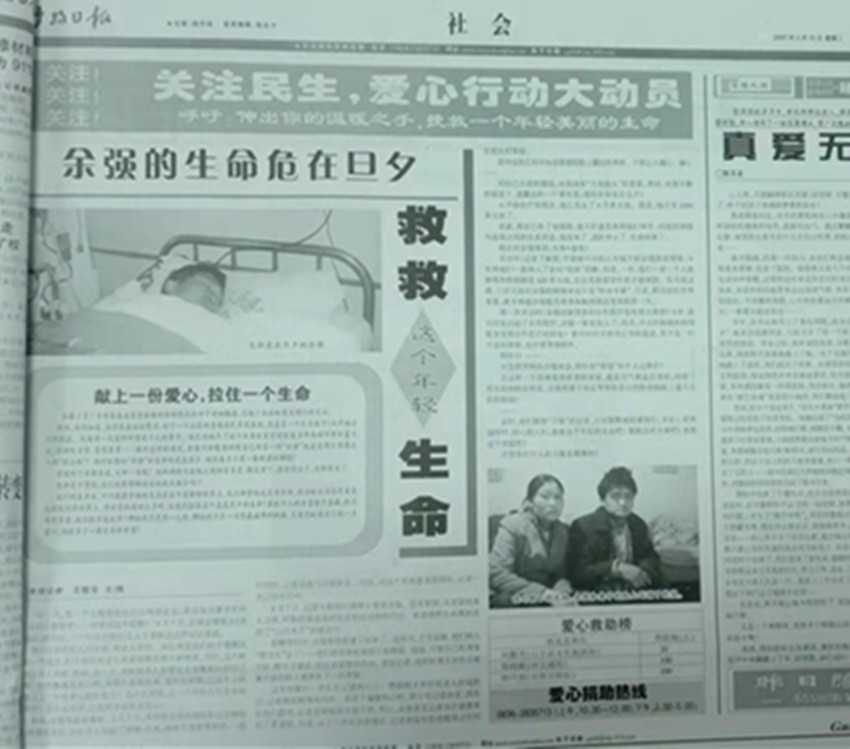 15年前,甘孜日報為挽救余強(qiáng)生命而做的報道。
