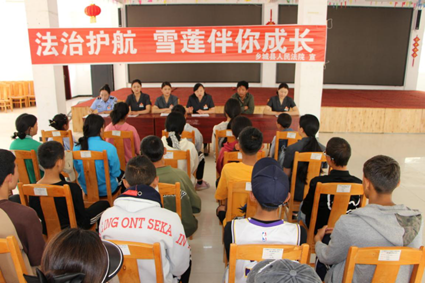 鄉(xiāng)城縣法院“正義雪蓮”女子審判團隊開展送法進校園活動。