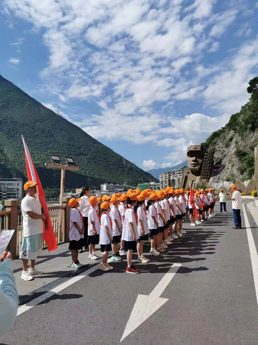 本網(wǎng)訊 今年是全面貫徹落實(shí)黨的二十大精神的開局之年,為認(rèn)真貫徹落實(shí)《關(guān)于進(jìn)一步做好新時代關(guān)心下一代工作的意見》精神,引導(dǎo)廣大青少年成為德智體美勞全面發(fā)展的社會主義建設(shè)者和接班人,7月17日,“老少共筑中國夢·民族團(tuán)結(jié)一家親”瀘定縣青少年夏令營活動在瀘定縣紀(jì)念碑公園舉行。圖為活動現(xiàn)場,瀘定關(guān)工委老同志與青少年一起“重走長征路”。 瀘定縣關(guān)工委 攝影報道