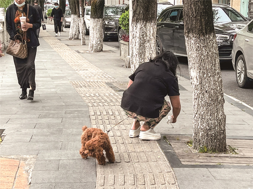 市民自覺(jué)清理寵物狗糞便。