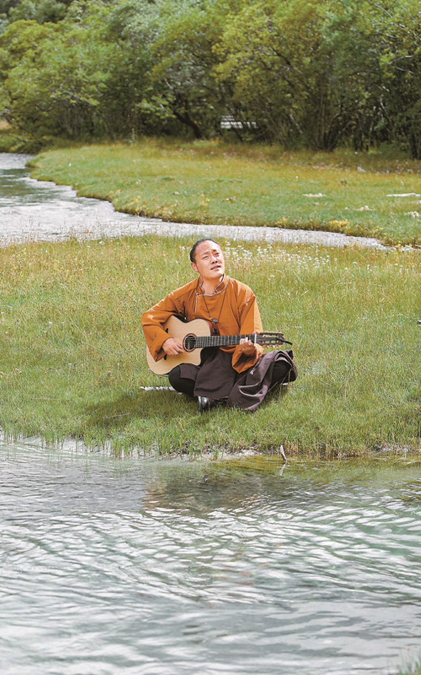 2016年,索郎達(dá)吉受邀成為“稻城亞丁官方旅游大使”。來到亞丁,他用自己擅長的音樂方式來宣傳推介亞丁旅游,常常抱著一把吉他,在亞丁不同的美景之中隨心演唱,這里的美景也激發(fā)了他的創(chuàng)作熱情。