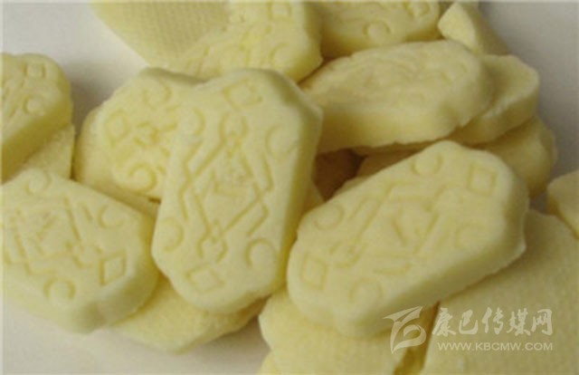藏族酥酪糕是藏族的著名糕點(diǎn),在藏族同胞的家里常用作款待客人的美味點(diǎn)心。而且它本身具有很好的保健功效,能夠在品嘗美食的同時(shí)又滋補(bǔ)身體。藏族酥酪糕食用起來(lái)奶味濃郁,十分受到不同年齡及族群的喜愛,其中還有多種對(duì)身體十分有益的材料,例如西藏人參果就是一種純天然無(wú)污染的滋補(bǔ)食品。酥酪糕是用提取過(guò)奶油后的乳白色淀粉(藏名曲熱)晾干后,用磨磨成粉末,拌入黃油(奶油)、白糖、角麻(人參果)、葡萄干、桃仁等,做成橢圓形、方形,表面有紅絲綠絲擺成圖案,表現(xiàn)吉祥、長(zhǎng)壽,放入籠屜內(nèi)蒸熟,賓至可整塊獻(xiàn)上,或切成片狀。據(jù)說(shuō)它有滋補(bǔ)強(qiáng)身之功效。