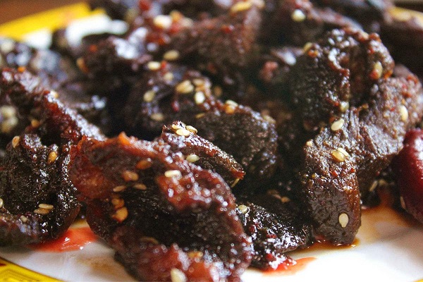 3500米以上地區(qū)這些地方生長著許多野生藥種如貝母,蟲草等,耗牛常食這些藥材,其肉鮮美無比,殺后可炒紅燒,清燉或涼曬成干巴等,其味獨(dú)特,吃耗牛肉在迪慶,實(shí)在是一種享受。并可在市場(chǎng)購買干巴,肉松等作饋贈(zèng)青朋好友的禮品。牦牛肉可以粘辣椒油,味道仍然鮮美??刀ǖ呐H獠粌H有牦牛肉,還有熏牛肉等等,比起其他康定特產(chǎn)更是別具一番風(fēng)味。