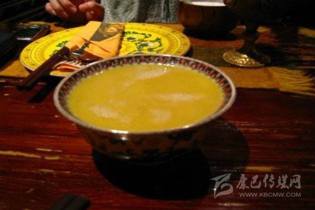 藏族酥油茶是一種以茶為主料,藏語為“恰蘇瑪”,意思是攪動的茶。并加有多種食物經(jīng)混合而成的液體飲料,所以,滋味多樣,喝起來咸里透香,甘中有甜,它既可暖身御寒,又能補充營養(yǎng)。
