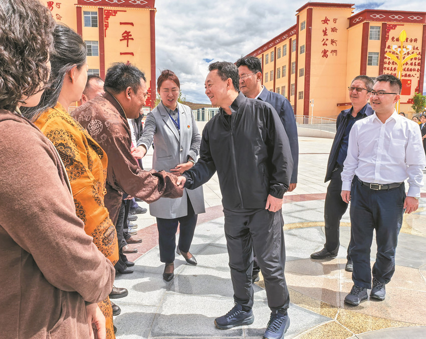 真達(dá)派出所所長登真扎巴(左二)向牧民群眾進(jìn)行法治宣傳。