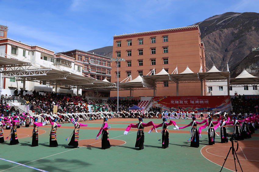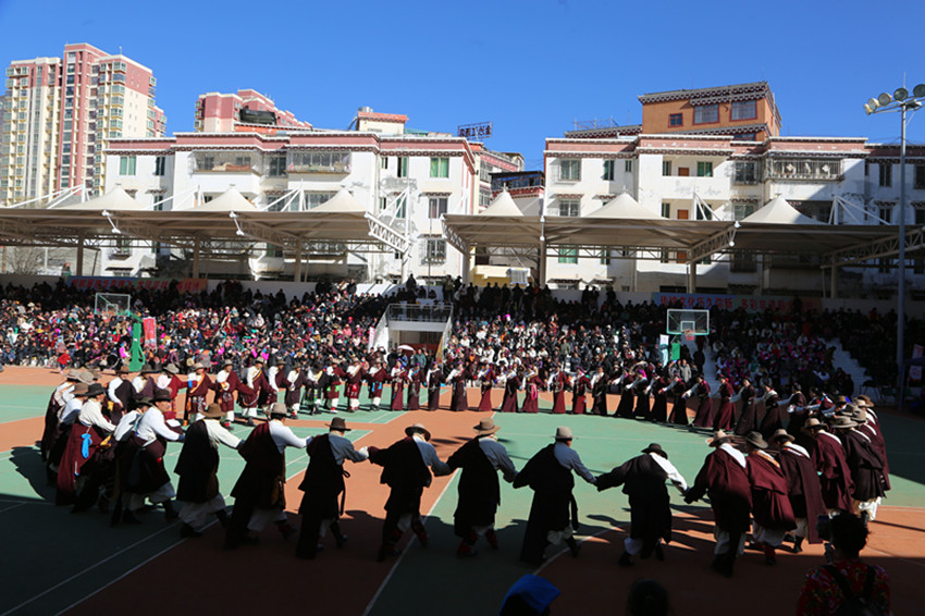 弦音聲動鬧新年,紅綾長袖舞春風(fēng),千人弦子鍋莊,唱出龍年大團圓,踏出幸福新舞步……2月13日,在巴塘縣全民健身活動中心舉行的春節(jié)暨藏歷新年系列活動“文化·點靚生活”——巴塘縣五彩藏鄉(xiāng)藝術(shù)周弦子鍋莊展演活動現(xiàn)場喜氣洋洋、人頭攢動,上千名群眾身穿節(jié)日盛裝,拉起弦胡,載歌載舞,共同慶祝新春佳節(jié),祈盼龍年國泰民安、風(fēng)調(diào)雨順。圖為活動現(xiàn)場。 敖梅 李穎/文 格桑澤仁/圖