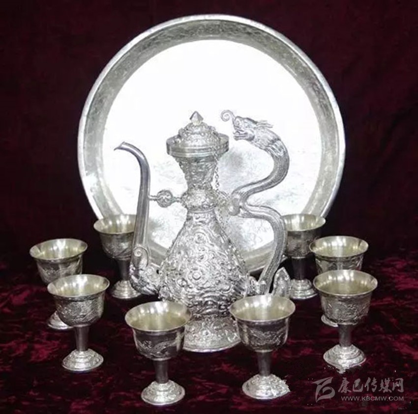 金屬制酒器酒具中關(guān)于銀質(zhì)酒器的說(shuō)法最多。一種說(shuō)法是,因?yàn)殂y離子具有消毒功能,所以青稞酒盛在其中不容易變質(zhì),且口感比較醇。銀質(zhì)酒器還分為精心加工過(guò)的和未加工過(guò)的兩種,使用兩種器具喝酒時(shí)的口感也不同,加工過(guò)的口感會(huì)更細(xì)膩一些。除此之外,還有木制的。木制的分為純木制和鑲了金銀銅等邊飾的兩種,林芝、昌都地區(qū)因木材資源豐富而使用較為流行,還有有牦牛角或牦牛皮制的、有陶制的,以及現(xiàn)在很常見(jiàn)的玻璃制的等。